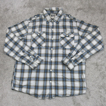 Converse Men Button Up Plaid Shirt Long Sleeve Collar Neck Blue White SZ X Large