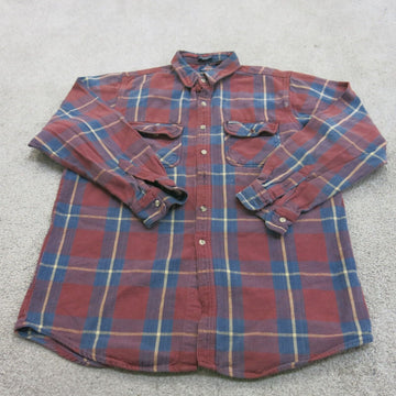 Dickies Shirt Mens X Large Red 100% Cotton Long Sleeve Plaid Button Up Pockets