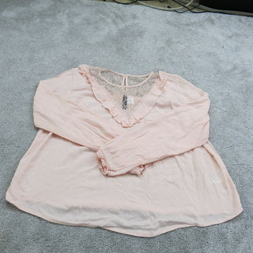 Divided by H&M Womens Lace Ruffle Neck Blouse Top Long Sleeve Peach Size US 14