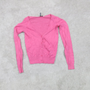 Divided H&M Womens Cardigan Sweater Knitted V Neck Long Sleeves Pink Size 4