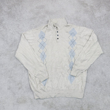 Dockers Womens Polo Argyle Sweater Knitted 100% Acrylic Long Sleeve Beige SZ XXL