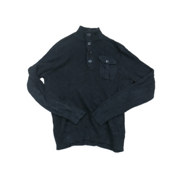 Express Mens Pullover Sweater Long Front Button Pockets Long Sleeves Black SZ L