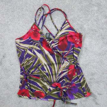 Express Womens Floral Swimwear Tankini Top Crossback Strap Red Blue Size 9/10