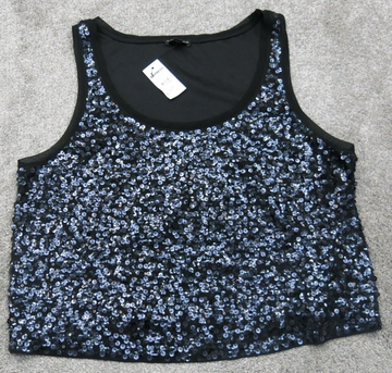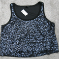 Express Womens Party Cocktail Sequins Cropped Tank Top Sleeveless Black Size L