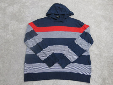 Express Womens Pullover Hooded Sweater Knitted Long Sleeves White Blue Size XXL