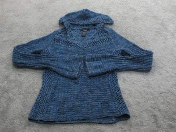 Express Womens Pullover Hooded Sweater Long Sleeve Cotton Navy Blue Size Medium