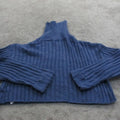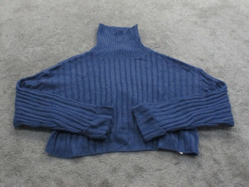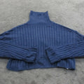 Forever 21 Women Pullover Crop Sweater Knitted Long Sleeve High Neck Blue Size S