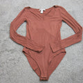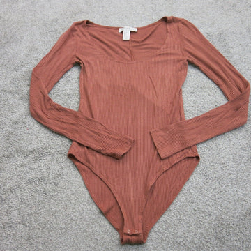 Forever 21 Womens Bodysuit Knitted Round Neck Long Sleeves Orange Size Small
