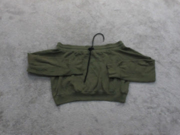 Forever 21 Womens Crop Top Long Sleeves Cold Shoulder Olive Green Size Large