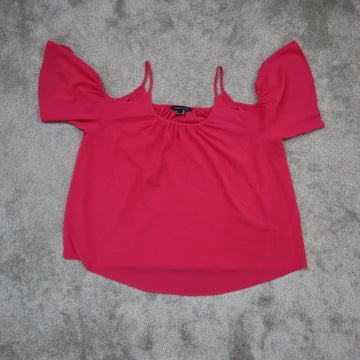 French Connection Womens Blouse Top Cold Shoulder Solid Polyester Pink Size M