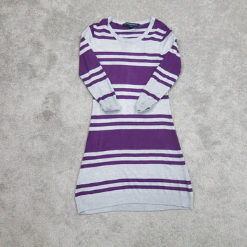 French Connection Womens Sweater Dress 3/4 Sleeves Round Neck Purple Gray US 8