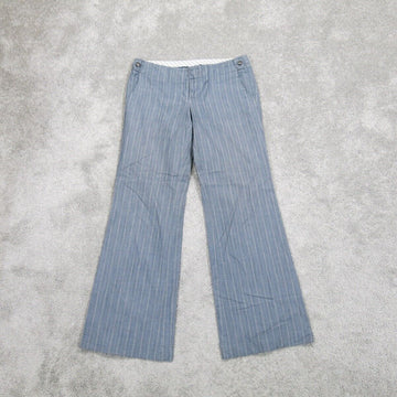 Gap Womens Flared Leg Dress Pant Mid Rise Pockets Striped Slate Blue SZ 2 Long