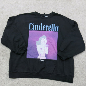 H&M Disney Cinderella Women Pullover Sweatshirt Long Sleeve Crew Neck Black SZ L