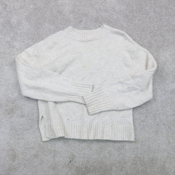 H&M LOGG Womens Pullover Sweater Crew Neck Slit Hem Solid White Size Small
