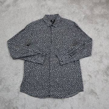 H&M Mens Polka Dot Button Up Shirt Long Sleeves Slim Fit Black/White Size Medium