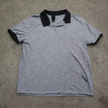 H&M Mens Polo Shirt Striped Short Sleeves Collar Button Blue White Size Large