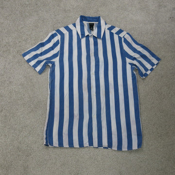 H&M Shirt Mens Small Blue White Striped Button Up Shirt Short Sleeve Lightweight
