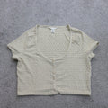 H&M Women Knitted Polka Dot Cardigan Sweater Front Button Cap Sleeve Ivory SZ XL
