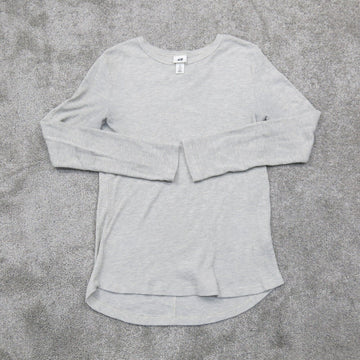 H&M Women Pullover Knitted Sweater Top Long Sleeve Crew Neck Heather White Small