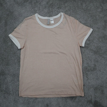 H&M Women Pullover T Shirt Top Slim Fit Short Sleeve Round Neck Beige Size M