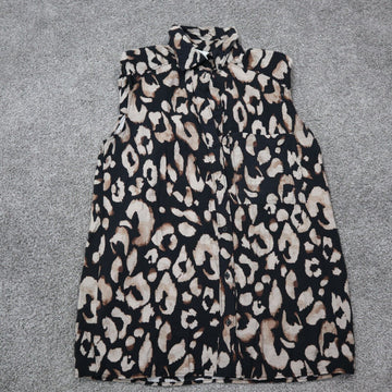 H&M Womens Blouse Top Tapered Prints Button Up Sleeveless Brown Size Small