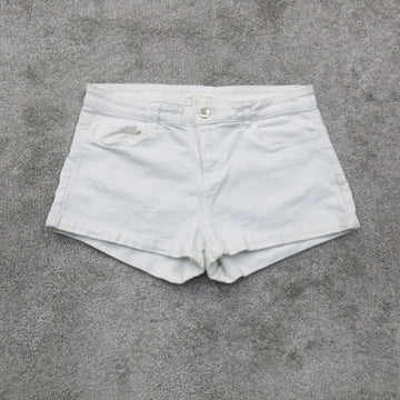 H&M Womens Boyfriend Jeans Shorts Stretch Roll Hem Mid Rise Pockets White US 8