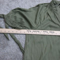 H&M Womens Button Front Blouse Tie Sleeves Silky Feel Sage Green Stripes US 8