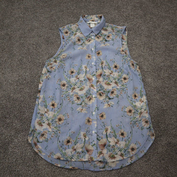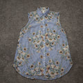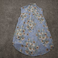 H&M Womens Button Up Blouse Top Sleeveless Stripe Floral Blue Cream Size US 4