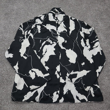 H&M Womens Button Up Shirt Top Tie Die Long Sleeves Black & White Size Small