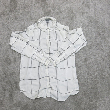 H&M Womens Casual Button Up Shirt Top Long Sleeve Collar Check White Size US 2