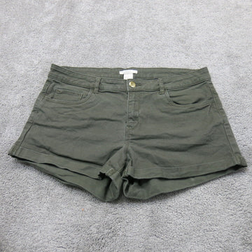 H&M Womens Casual Denim Shorts Stretch Mid Rise Pockets Clay Green Size US 10