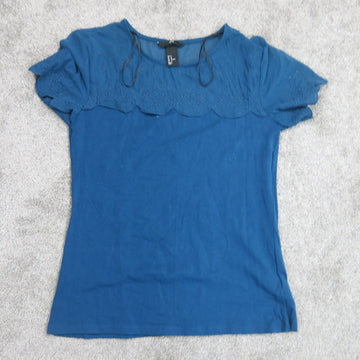 H&M Womens Casual Pullover Blouse Top Cap Sleeves Crew Neck Blue Size Medium