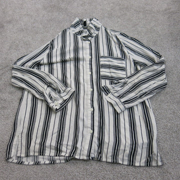 H&M Womens Casual Striped Button Up Shirt Long Sleeves Black Cream Size 12