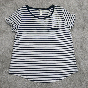 H&M Womens Casual T Shirt Top Crew Neck Tee Short Sleeve Stripe White Black Sz S