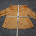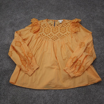 H&M Womens Eyelet Ruffle Blouse Top Balloon Sleeve 100% Cotton Orange Size 12