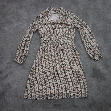 H&M Womens Fit and Flare Mini Dress Printed Long Sleeves Cream Size 2