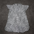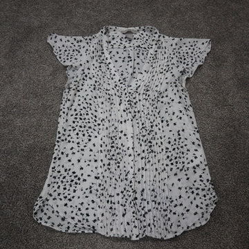 H&M Womens Floral Blouse Top Pleated Button Up Flutter Sleeve White Black Size 0