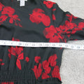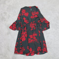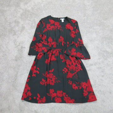 H&M Womens Floral Pleated Mini Dress Bell Sleeve Back Key Hole Black Red US 10