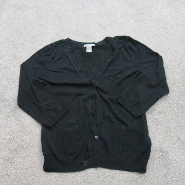 H&M Womens Knitted Cardigan Sweater Distressed Front Button Black Size Medium