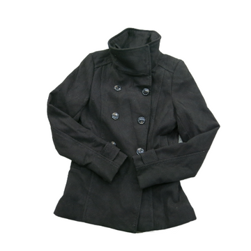 H&M Womens Pea Coat Double Breasted Long Sleeve Mock Neck Black Size 4
