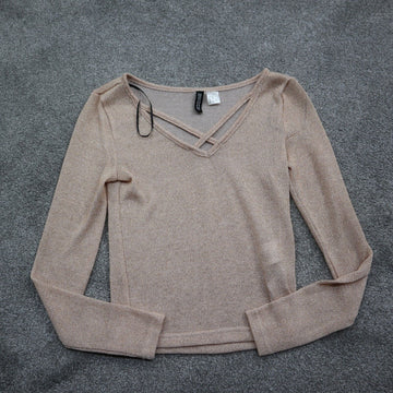 H&M Womens Pullover Knitted Sweater Long Sleeve V Neck Light Pink Size X Small