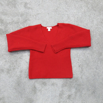 H & M Womens Pullover Knitted Sweater Long Sleeve V Neck Red Size Small