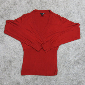 H&M Womens Pullover Wrap Sweater Knitted Long Sleeve V Neck Red Size Medium