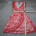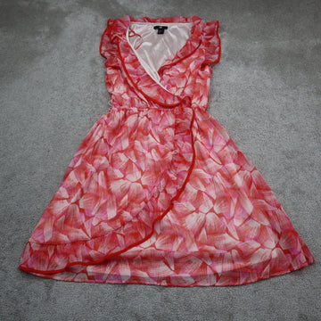 H&M Womens Ruffle V Neck Fit & Flare Mini Dress Sleeveless Red White Size 8
