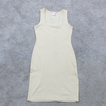 H&M Womens Shift Mini Sweater Dress Cream Sleeveless Scoop Neck Size Small