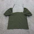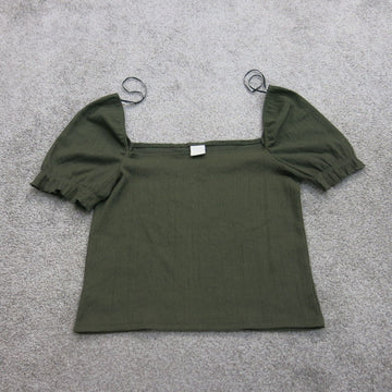 H&M Womens Smocked Cropped Top Pullover Puff Sleeves Green Size Large