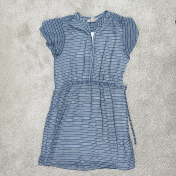 H&M Womens Striped Casual Mini Dress Tie Waist 3/4 Sleeves V Neck Blue White L