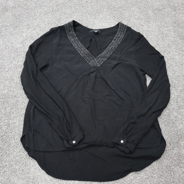 H&M Womens V Neck Crystal Blouse Top Long Sleeve High Low Black Size 2