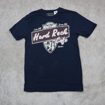 Hard Rock Mens Crew Neck Graphic T Shirt Café 100% Cotton Logo Blue Size Medium