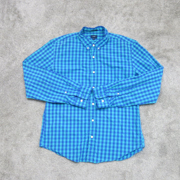 J. Crew Mens Check Button Down Shirt Long Sleeves Collar Neck Blue Size X Large